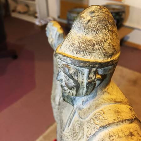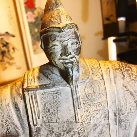 Vintage Japanese 'Noh Actor' - Figure / Okimono Stone Statue, with wood stand, and weigh: about 15lbs.