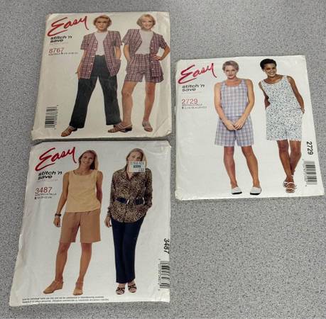 Three uncut sewing patterns by McCall’s Easy stitch ‘n save line.