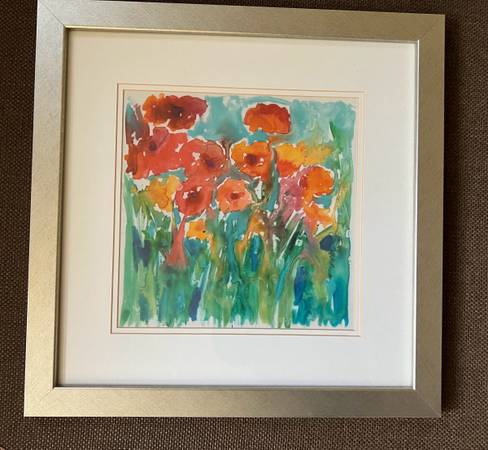 Art print of Poppies double matted silver frame 19” x 19” - arts &...