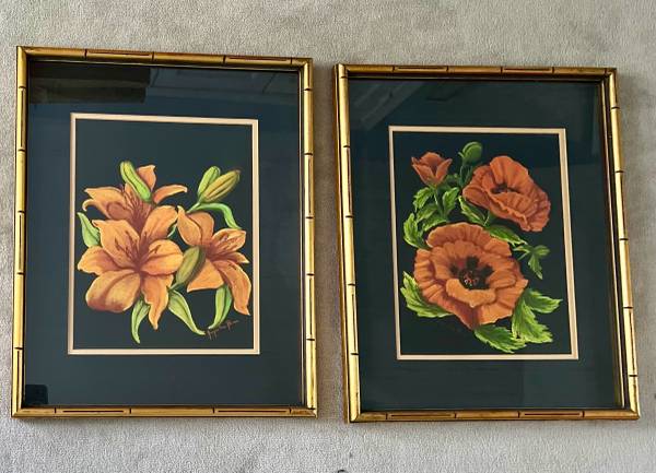 Stunning set of paintings each signed by the artist Jacqueline Barr One is of poppies and the other is day lilies. Each beautifully framed. These look great near each other