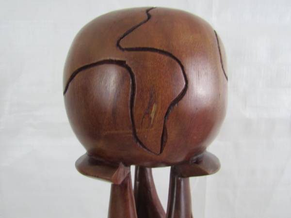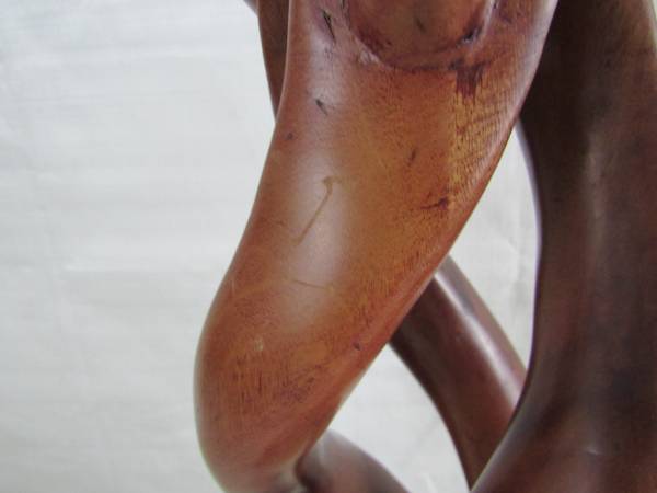 The wood sculpture is 24" tall. Good condition with some minor age and usage wear. No broken or missing parts See photo's