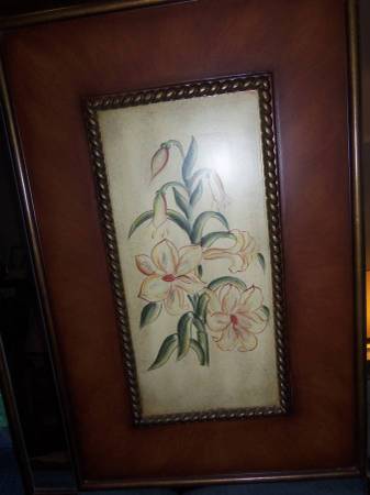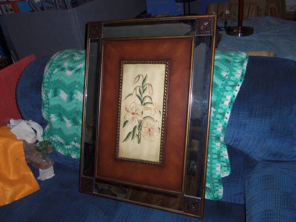 Flower painting mounted on a solid wood mirrored frame. 23.75" x 33".