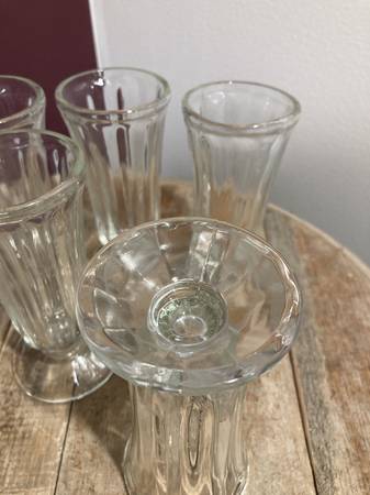 Five charming clear glass dessert goblets with rippled panels. In “parfait” (perfect) condition, no chips.