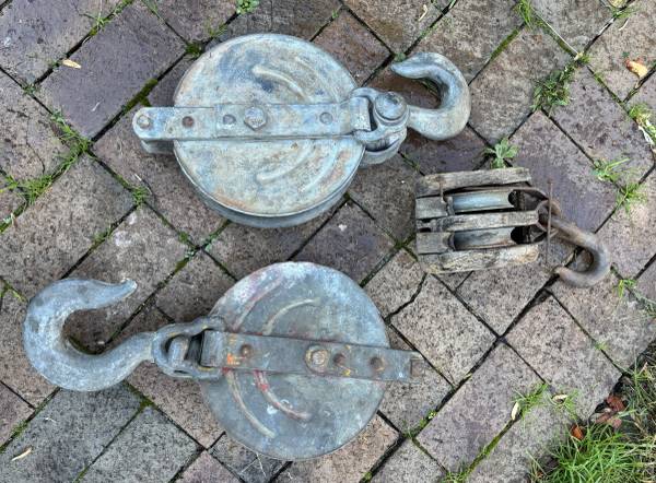 Antique Pulleys, Excellent, Authentic *Wood is compromised on the smallest pulley due to aging process. $100 takes ALL three pulleys