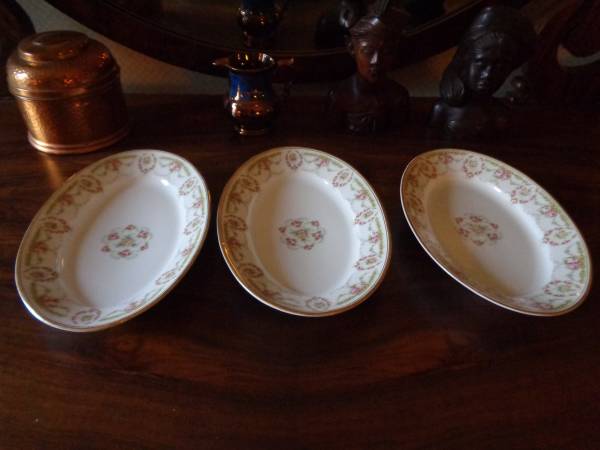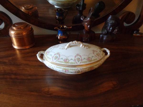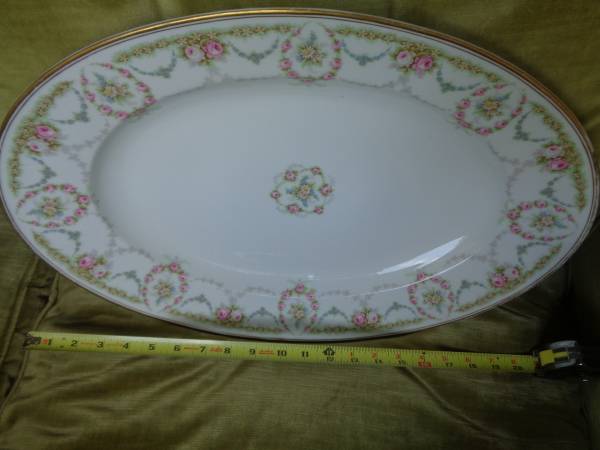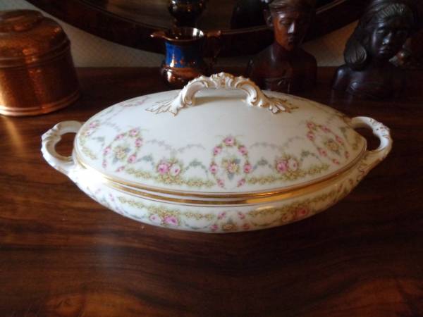 Limoges China set by Elite Works. The name of the pattern is Bridal Wreath. Pictures are attached. Please note: The demitasse cups and saucers and the coffee server pictured have been removed from the sale. The condition is good, used. There is some wear to some of the gold on rims and to large platters and serving dishes, but most show no wear. This set was purchased in New York City between 1900 and 1914. I am uncertain about the actual use of some of the items, as indicated by the question marks. I removed any pieces that were chipped, cracked or stained. The sale is for the entire set, with the exceptions noted above, and is for cash only. The set can be inspected and picked up near 15th and Eads Streets in Arlington, VA.
