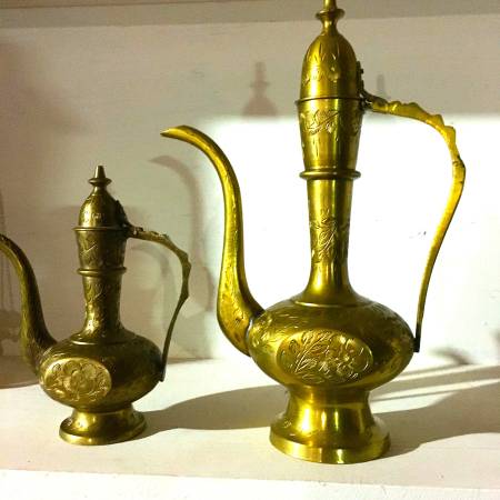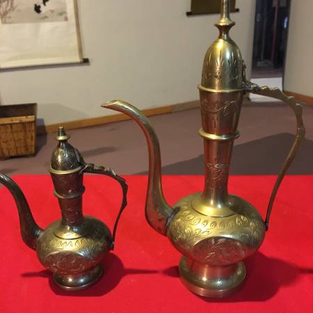 A Pair of Vintage Brass Teapot made in India, Detailed ornate Floral.