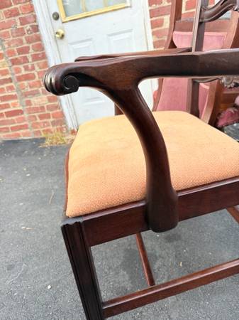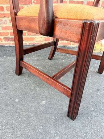 Antique Chippendale style ribbon high back armchair Solid wood frame, straight legs, H stretcher base Sturdy and strong