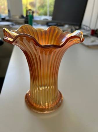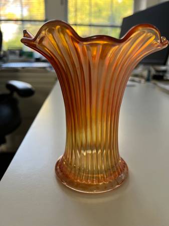 Antique Norwood Marigold Carnival Glass Slag Vase 6” - antiques - by...
