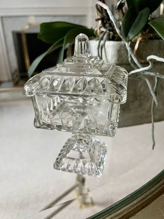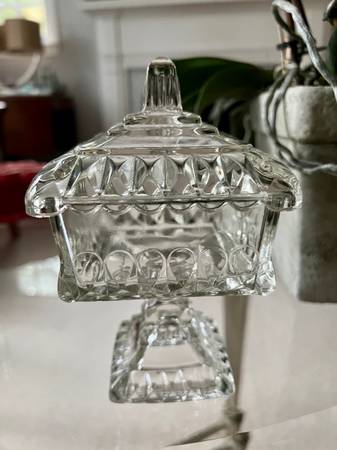 It’s from the 1950’s and can be used as a wedding cake saver or lidded candy dish. Absolutely beautiful! There are no chips or scratches and the glass is clear - it’s in amazing condition! These dishes are so versatile and can be used to store pretty much anything.