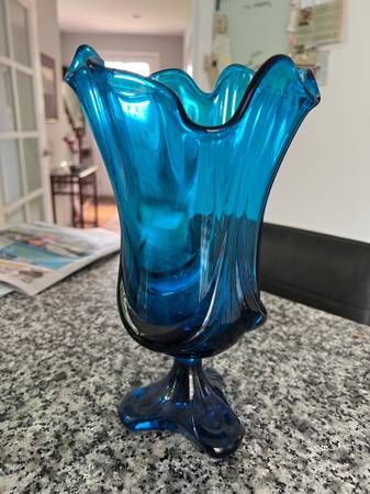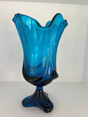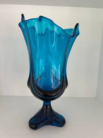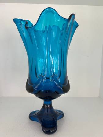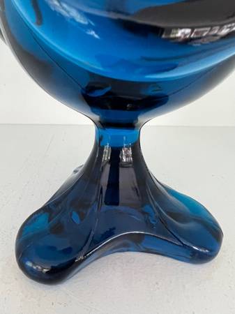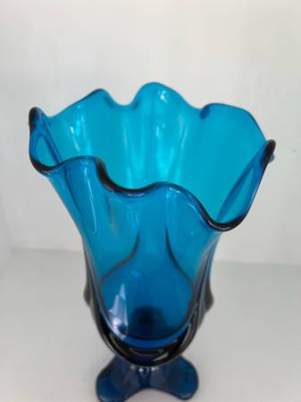 This is a Stunning vintage MCM Viking bluenique vessel in the Epic Drape design. Collectible Vintage american glass Beautiful color with a great shape on a unique three toed base