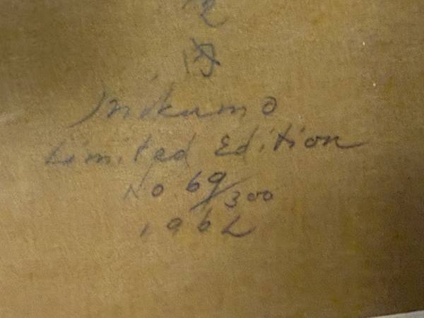 Signed by Ini Kumo. A 1962 woodblock print, number 69 of 300 (see pictures).