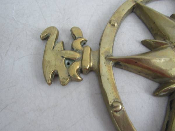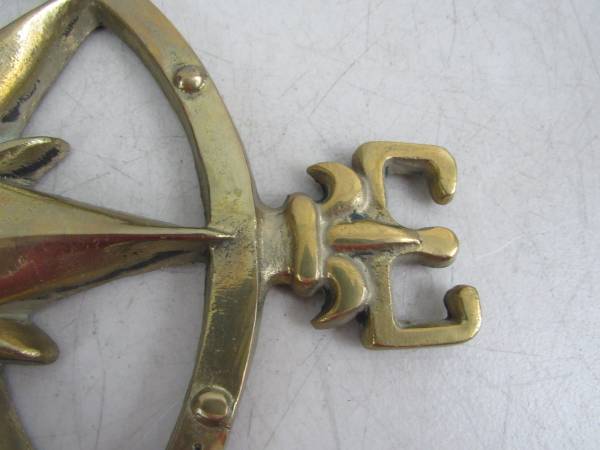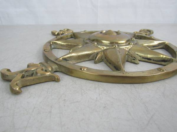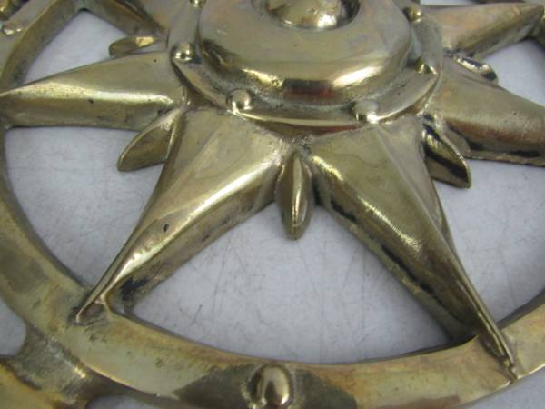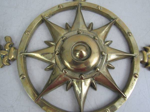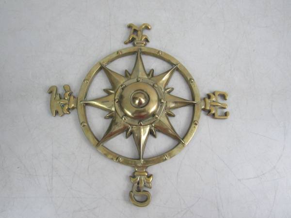 The compass is 12" diameter, and is made of solid brass. Weighs 2 pounds 11 ounces. Good condition with some minor age and usage wear. No broken or missing parts. See photo's