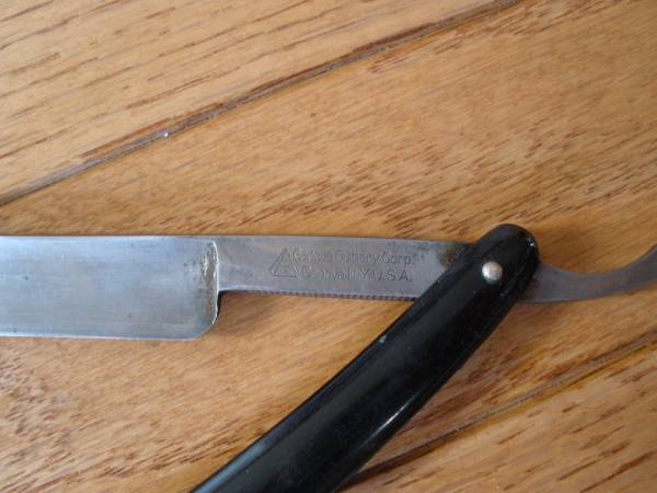 For sale is a vintage PYRAMID BRAND STRAIGHT EDGE RAZOR made by Geneva Cutlery Corporation, Geneva, NY. This 5/8 inch blade has the pyramid logo brand on the tang. On the inside of the pyramid has a "7" inside it. The straight razor is about 6 1/4 inches in length closed or 9 1/2 inches open. The Bakelite handle and razor blade is in very good condition. A nice collectible shaving razor.