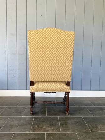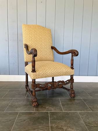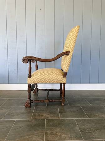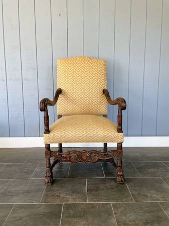 Beige Fretwork Upholstery Louis XIV Style Fauteuil Chair 26.5 inches wide, 42 inches tall, the seat is 20 inches off the ground and 20 inches tall. Firm price. W&B. Follow us on Instagram...
