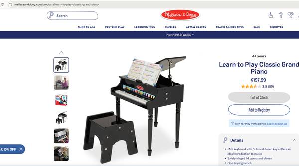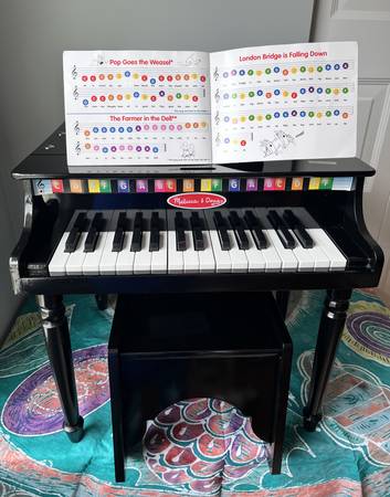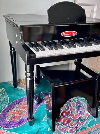 This is a Melissa & Doug (whose business was bought by Spin Master Corp) well-designed and perfectly-made toy. The bench along is multi functional: under desk footrest, a bathroom stool, and a piano bench. The two items were lightly used and remain in great condition.