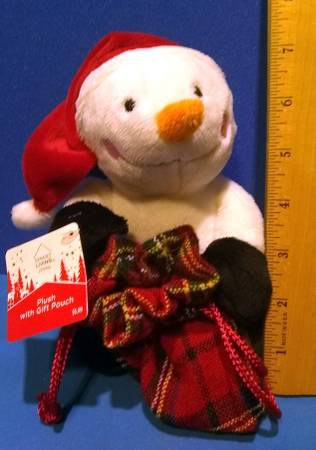 One plush snowman toy with gift bag. The toy measures about 6 3/4 inches tall and 5 inches wide. A 360 degree video view of the snowman toy can be viewed here:...