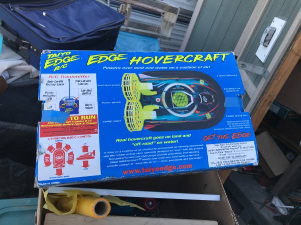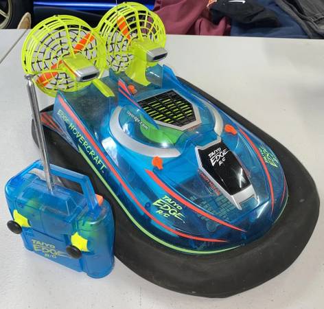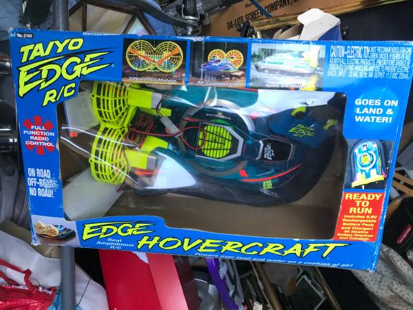 🚀 RARE Taiyo Edge Hovercraft 2162 RC –Amphibious Land & Water Vehicle | 49MHz | 9.6v | 2001–2002 🚀 A true collector’s gem! This Taiyo Edge Hovercraft RC model 2162 is a rare find — still sealed in its original box, never used, and ready for display or restoration.
