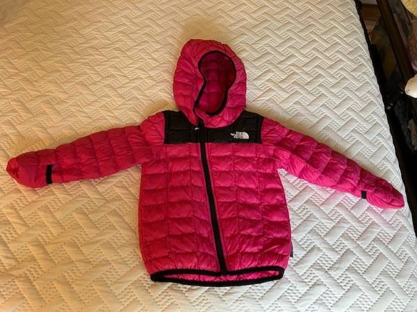 - Pink North Face ThermoBall puffer coat. Hoodie and built-in mittens. (North Face 18-24 months) $20