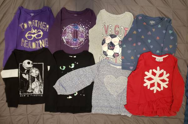 My location is in Dumfries, VA (Montclair). Girls size 5, 6/6X, 7, XS, S Clothes. Pic#1 Long sleeve T-shirts - $15 Upper row 6/6X. Lower left XS, S, S, M(5-6) Pic#2 Short sleeve T-shirts - $8 Upper...