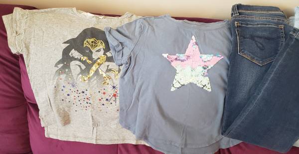 My location is in Dumfries, VA. Girls Clothes, Size 7/S pic# 1-3 - $20 (2 lower shirts size 8 but fits small) pic# 4-6 (PJ-s) - $15