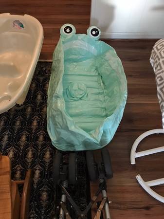 For sale: one collapsible plastic baby’s bathtub, one plastic baby’s bathtub, one spring action solid wood maple child’s rocking chair, two toddler white and natural wooden chairs, one collapsible stroller, one crib mattress with sheet and matching quilt. All in excellent like new condition. Grandma and grandpa are not storing things anymore.