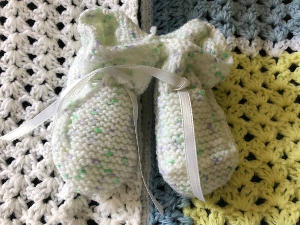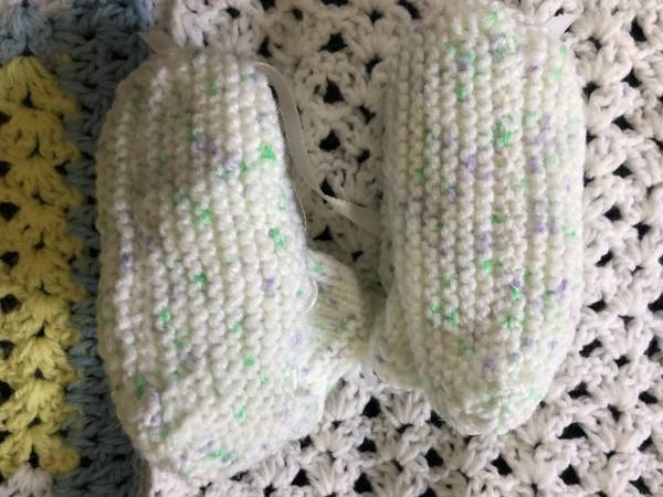 These are soft and beautiful hand crocheted items made by a family member. Would make a lovely baby gift for anyone - girl or boy. Hand washing cold water is suggested. Price is for all three items.