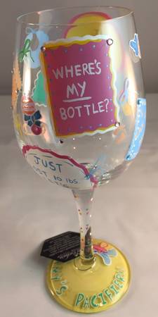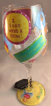 Lolita 'New Mommy' jeweled hand painted wine glass, new, never used. In box with tags. From a smoke and pet free home.