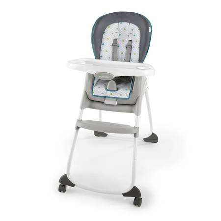Messy eaters are no match for the Ingenuity Trio 3-in-1 High Chair easy clean design; includes dishwasher safe tray, machine washable seat pad and straps, and easy-wipe frame.