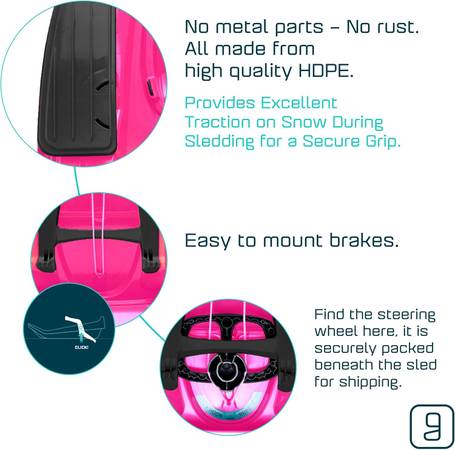 STEERABLE SLED: The Steering Wheel offers excellent control for enhanced safety, is also connected to a locking differential steering system that provides the Stratos with the ability to maintain high speeds. The Anti-Slip Seat prevents kids from sliding