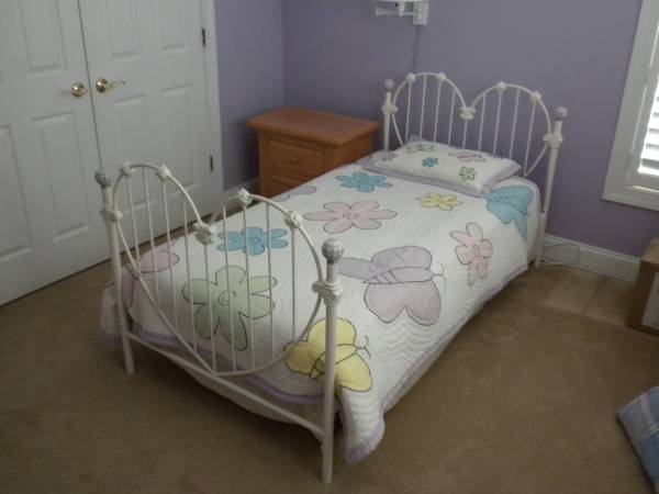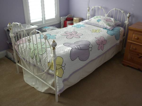 White metal bunk beds.