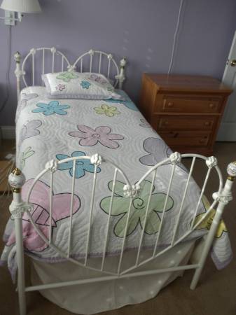 Complete with mattresses, sheets, comforter, matching sham, and tailored bed skirt.