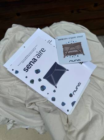Nuna Sena Aire travel bed. Excellent used condition. Includes everything it was purchased with. Bassinet, travel bag, GOTS certified organic cotton sheet, Greenguard Gold certified. Can meet in NOVA.
