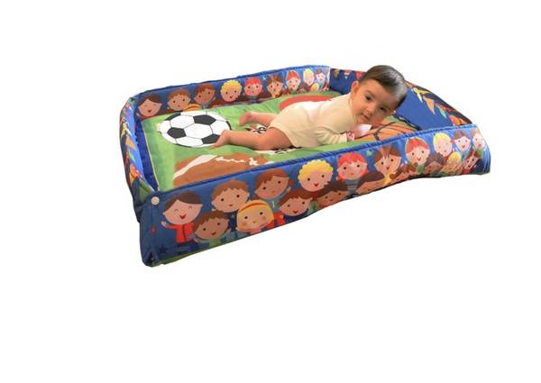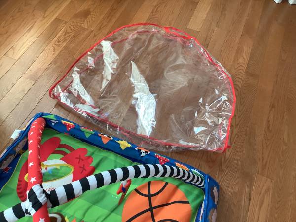 This is a gently used Little Sports Star Baby Play Mat Gym. It has removable toys, a musical football and carrying case. The bars can be unsnapped to remove and the sides can be unsnapped to lay...