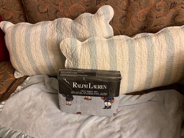 NEW twin sheets set RALPH LAUREN 2 pillows (one damaged pillow case) 1 soft blanket