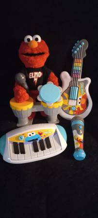 Comes with Elmo, microphones, tambourine, keyboard, drums and guitar. Does not include batteries (but can demonstrate that all is in working condition) Cash and pick up only please.