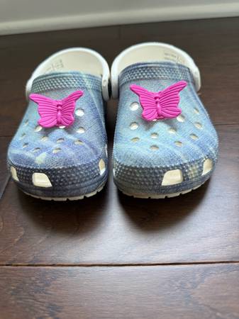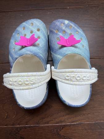 Crocs Kids Classic Graphic Clog, White/Multi, Size 8 US Girls Toddler in excellent condition.
