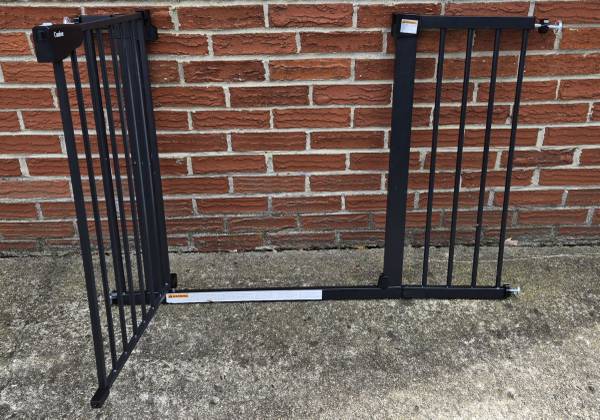 Cumbor Compression Baby or Pet Gate. The Width is Ajustable from 30" up to 46" inches wide and the Gate stands 30 inches tall.