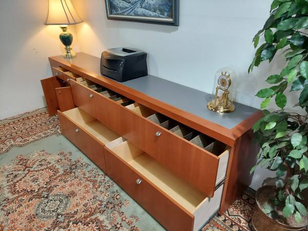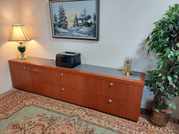 I have a very nice, excellent condition, CUSTOM BUILT CREDENZA SOLID CHERRY WOOD 18” x 108” x 28” for only $1695. A new one is $4735. I offer delivery and assembly setup inside your office for a...