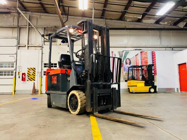 7-series Toyota electric forklift w/ a 5,000 lbs load capacity featuring an AC drive system, power steering, regenerative braking, and a high capacity battery as denoted by the ‘H’ in the model number vs. standard 7FBCU25 models. This unit is known for its maneuverability, precise handling, and reliability. Perfect for emissions-free, indoor use, and comes fully equipped with a side-shifting carriage and 48 in. forks.