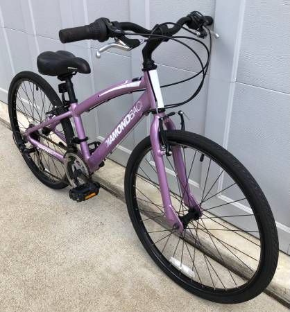 Diamondback Clarity Girls Bike (24" wheel): Excellent condition, everything works properly. Features include: light and strong aluminum frame (fits riders 4'-6" to 5'-6"); 14 speeds; smooth shifting Shimano twist grip shifters and Shimano Tourney derailleurs; solid stopping v-brakes; padded, adjustable height seat; kickstand; tires are in great condition. A new aluminum frame 24" wheel girls bike similar to this will cost at least $400. Why pay that much for a new one when you can buy this really nice used Diamondback bike for less. Cash Only. Will Not Deliver. If you see this ad the bike is available. If you inquire about this bike and don't receive a reply, please check your spam email folder.