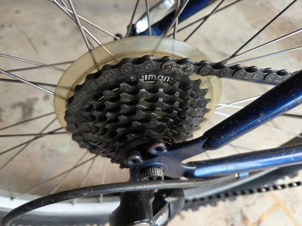 Super clean, hardly ridden hybrid with wider tires for good stability on rough surfaces.