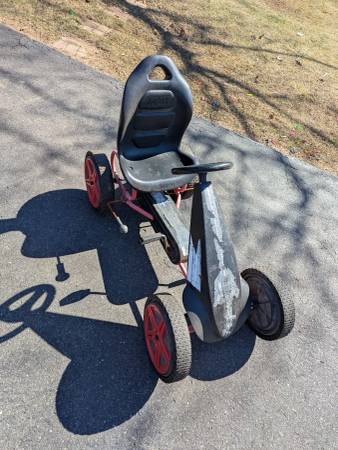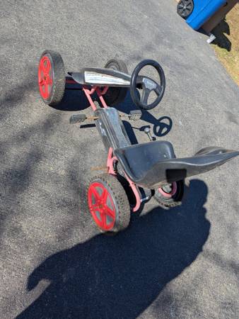 Go Kart for Kids, 4 Wheel Pedal Powered Go Cart with Steering Wheels & Adjustable Seat, Hand Brake,