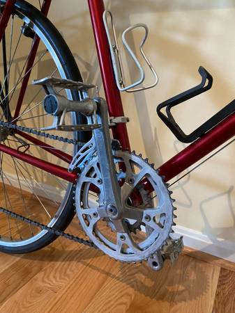 This Miyata 610 touring bike is in excellent condition! It has 18 speeds, 25” (63.5 cm) frame, and measures 34.5” from the ground to the top of the frame. It was just serviced in March 2025 (not ridden since) and has brand new DiaCompe cantilever pads, stainless road brake cables, Jagwire Slick stainless derailleur cable, Jagwire 5mm brake housing, bar tape, and Or8 sport saddle. See attached receipt. In short, it has been completely serviced and is ready to ride.