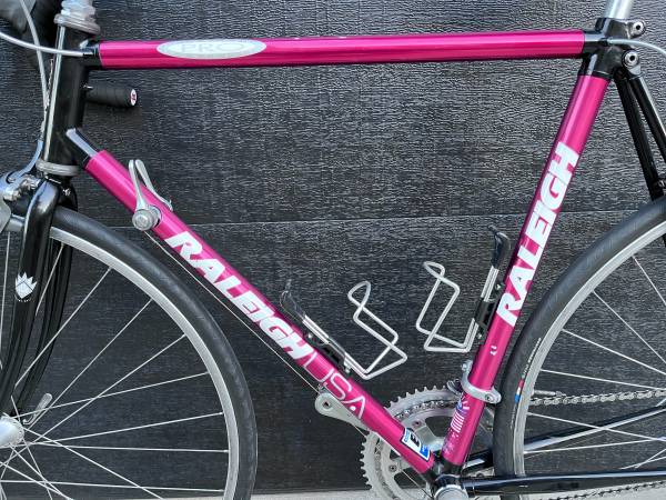 FOR SALE – LIKE NEW / EXCELLENT CONDITION / REFURBISHED – Vintage 1991 Raleigh Technium Pro – 14-Speed Road Racing Bike -- Top-Of-The-Line. 22-1/2” (57cm) Aluminum Tube Frame & Chromoly Rear Stays & Fork. Full Shimano Mix Of 105 & 600 Tricolor Component Groups. Weighs Only 21 lbs. Red & Black Color Frame Which Shows Only Very Minor Scratches, Chips Or Signs Of Wear. Bike Is In Excellent Condition For Its Age (Made In USA). Bike Is In “Like New” Show Room Clean Condition, Tuned, Straight And True And Should Fit Riders From About 5’10” to 6’4”. Asking $349
