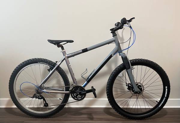 In short: Relatively lightweight do-it-all hybrid comfort gravel bicycle built to last in 2005 with all new components installed in 2025. You get a ~$750 value in frame and components, also comparable to a new $800 similar hybrid.