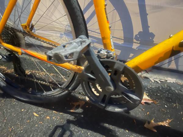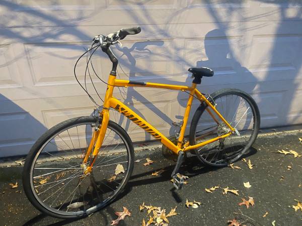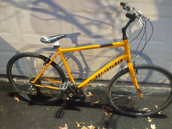 Specialized crossroads sport bicycle for parts or repair. Needs Seat and Seat Post. V Brakes are stuck. Tires are flat. Size extra large. Don’t know if gears work. Seat tube is about 21 inches.