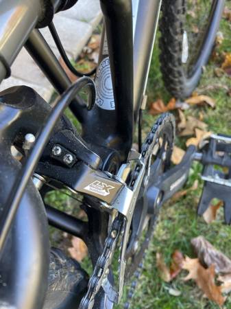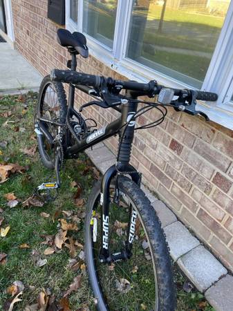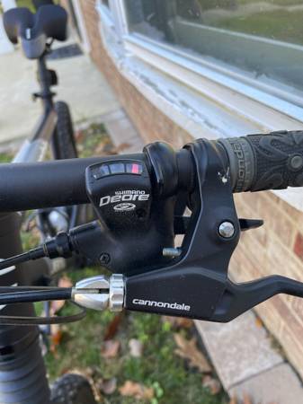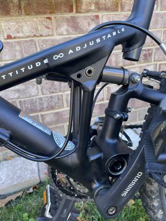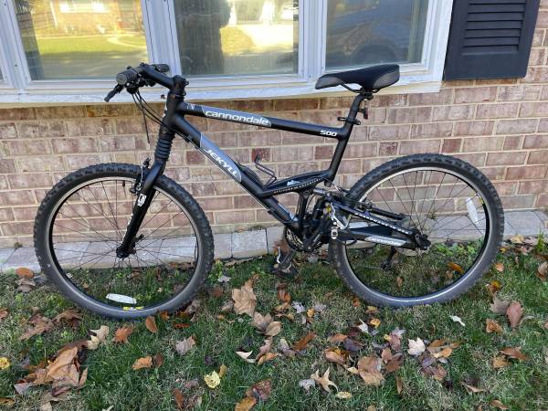 This is a Cannondale Jekyll 500 full suspension mountain bike in great shape. It has 26" tires, 19" frame, Shimano Deore shifters, an attitude adjustable frame, Super front suspension with a center shock, a new gel comfort seat.