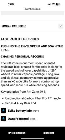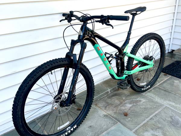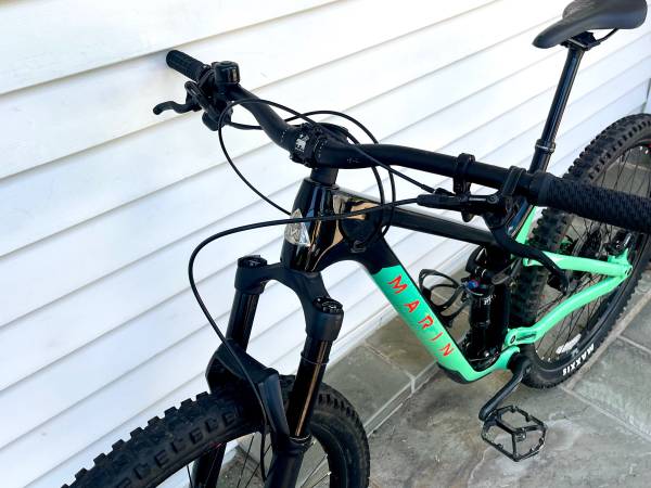 Large 2021 Marin Rift Zone Carbon 1 full suspension trail bike with upper-mid range components in very good condition. It has had light use, and has just been serviced. All components (drivetrain, brakes, suspension, etc) are working well. The frame and handlebars have a few cosmetic scuffs, but no damage. Includes a Manic XFusion dropper seat post.