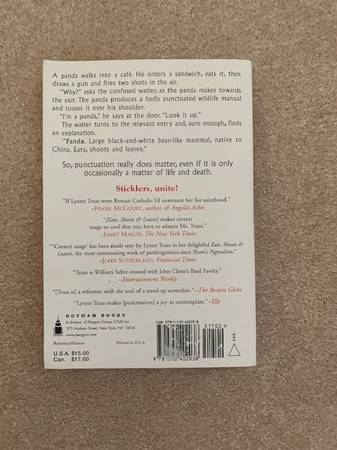 Eats Shoots & Leaves book by Lynne Truss, The Zero Tolerance Approach to Punctuation. Paperback book in excellent used condition.