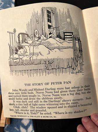 $20 each or $30 for any two books, $40 for all three vintage children's books "Peter Pan" and "Tom Thumb". The books were published by Platt & Munk Co. and is identified by "No. 3000 B"....
